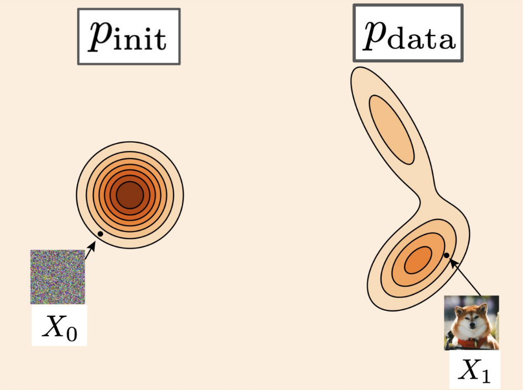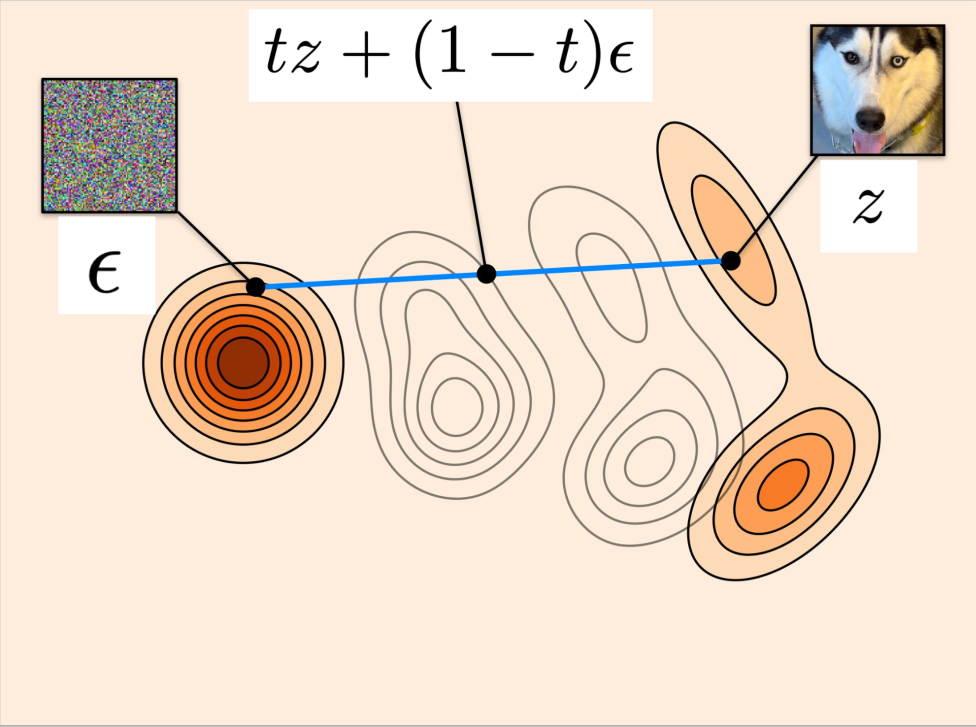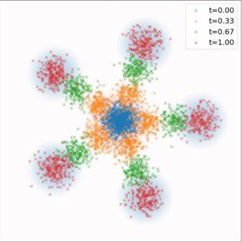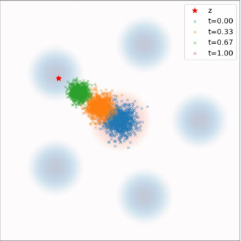 | Marginal Probability Path | \(p_t\) | Interpolates \(p_{\text{init}}\) and \(p_{\text{data}}\) | \(\int p_t(x\|z)\, p_{\text{data}}(z)\,\mathrm{d}z\) |
