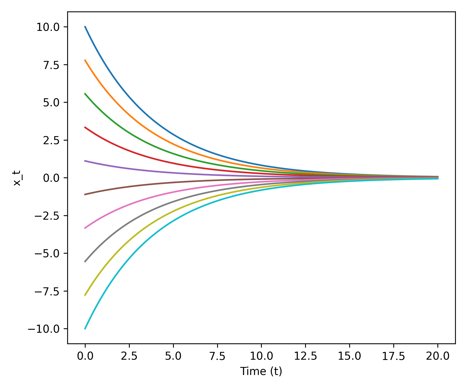 \[ \psi_t(x_0) = \exp(-\theta t) x_0 \]