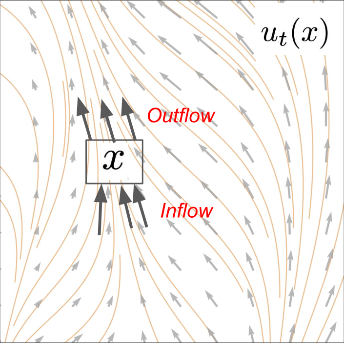 \[\frac{\mathrm{d}}{\mathrm{d}t}p_t(x) = -\operatorname{div}(p_t u_t)(x)\]