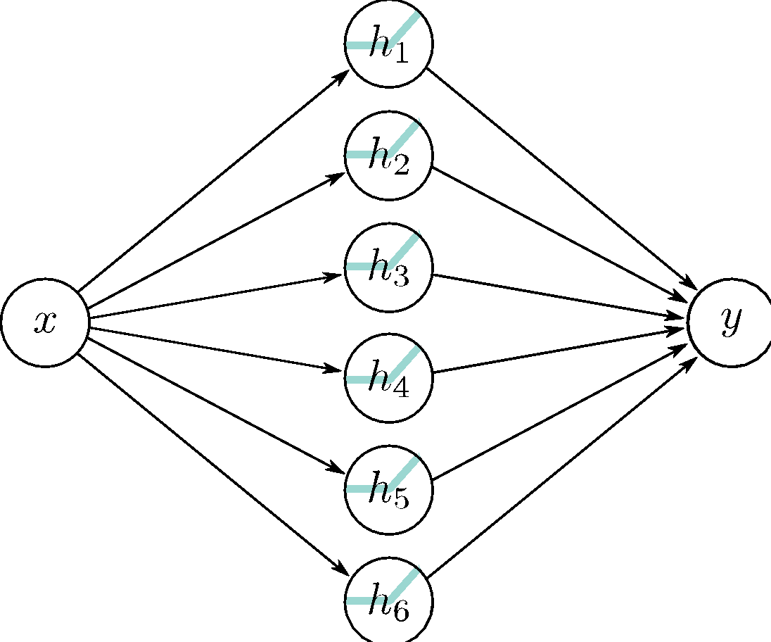 - The three hidden units \(h_1\), \(h_2\), and \(h_3\) in the first layer are computed as usual by forming linear functions of the input and passing these through ReLU activation functions (Equation 1).